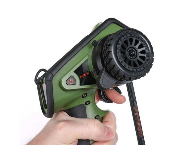 Das aggressive Offroad Reifenprofil am Lenkrad geben gemeinsam mit der Spektrum Präzision eine bessere Feinfühligkeit beim Steuern, unabhängig davon, ob du gerade crawlst, basht oder mit einem Boot in wildesten Bedingungen fährst. Der integrierte Daumenhebel ermöglicht eine sichere und präzisere Steuerung auch mit nur einer Hand.