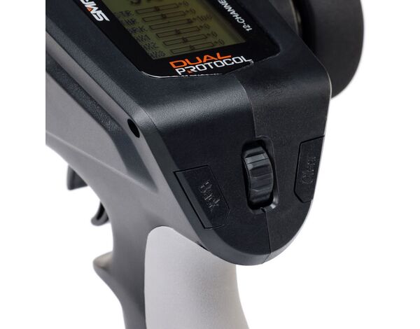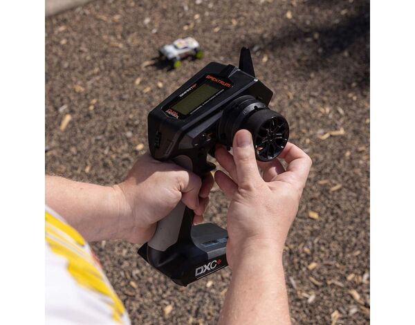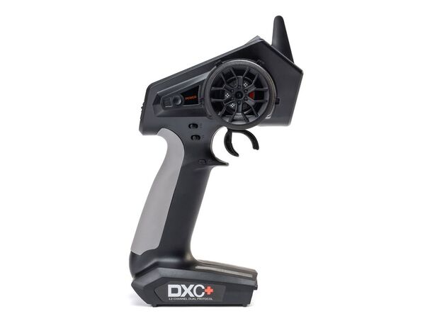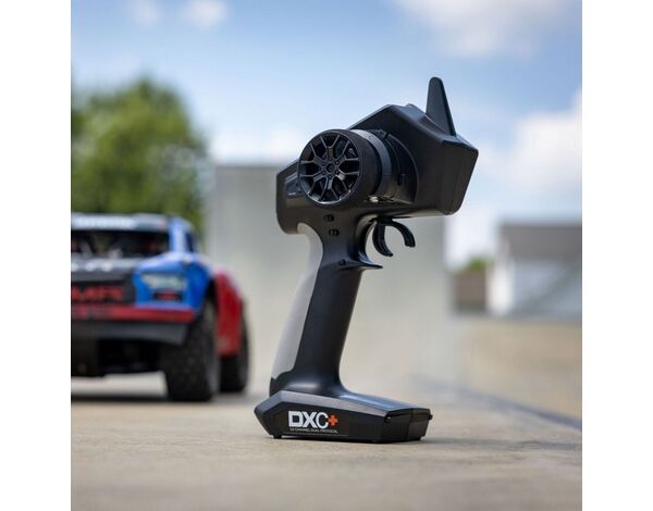 Die DXC+ bietet neue Upgrades und Funktionen, die sie zur idealen Upgrade-Fernsteuerung für RTR-Fahrzeuge machen. Zu den Verbesserungen gehören Dual Protocol, DSMR+, 12 Kanäle und ein USB-Anschluss für einfache Firmware-Updates sowie die Kompatibilität mit dem VRC Racing Simulator.
