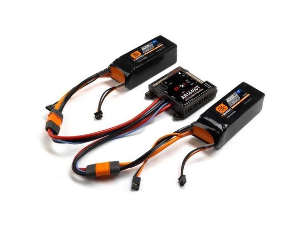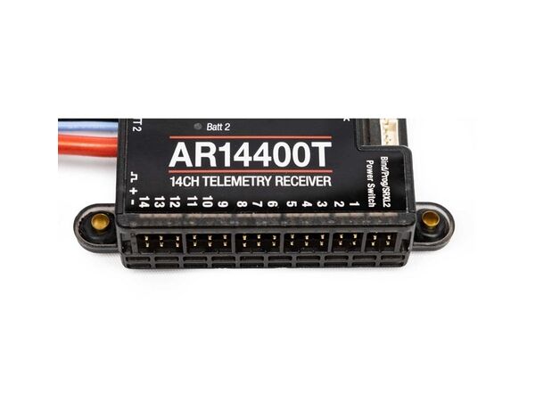 EMPFAENGER AIR 14400T 14CH DSMX PowerSafe - Integrated Telemetry Key Features Patentierte PowerSafe™ Doppel-Stromversorgung über zwei Akkueingänge mit 13AWG Kabel und IC3-Anschlüssen. Perfekt für leistungshungrige Flugmodelle und Hochstrom-Servos mit bis zu 35A (50A Kurzzeitig) Das Forward Programming ermöglicht einfache Anpassungen der Failsafe Einstellungen, Servo-Framerates und mehr Micro-USB-Anschluss für einfache Produktregistrierung und Firmware-Updates 12V-fähig für den Einsatz mit 12-Volt Servos (muss über Forward Programming aktiviert werden) Der eingebaute Akkukapazitätsmonitor meldet die während des Fluges verbrauchte Akkukapazität und kann automatisch zurückgesetzt werden, wenn vollständig geladene Akkus angesteckt werden In The Box (1) AR14400T 10 Kanal PowerSafe Empfänger (1) SPM4651T SRXL2 Serieller Satelliten-Telemetrieempfänger (3) SPM9747 SRXL2 DSMS Satellitenempfänger (1) 9-Zoll Kabel für SRXL2 Satellitenempfänger (1) 12-Zoll Kabel für SRXL2 Satellitenempfänger (1) 24-Zoll Kabel für SRXL2 Satellitenempfänger (1) 36-Zoll Kabel für SRXL2 Satellitenempfänger (2) IC3-Akku Steckverbinder (2) Ladebuchsen (1) Flugmodell Telemetrie-Spannungssensor (1) Soft-Schalter (1) Bedienungsanleitung AR14400T 14 Channel PowerSafe Telemetry Receiver Features Patentierte PowerSafe™ Doppel-Stromversorgung über zwei Akkueingänge mit 13AWG Kabel und IC3-Anschlüssen. Perfekt für leistungshungrige Flugmodelle und Hochstrom-Servos mit bis zu 35A (50A Kurzzeitig) Das Forward Programming ermöglicht einfache Anpassungen der Failsafe Einstellungen, Servo-Framerates und mehr Micro-USB-Anschluss für einfache Produktregistrierung und Firmware-Updates 12V-fähig für den Einsatz mit 12-Volt Servos (muss über Forward Programming aktiviert werden) Der eingebaute Akkukapazitätsmonitor meldet die während des Fluges verbrauchte Akkukapazität und kann automatisch zurückgesetzt werden, wenn vollständig geladene Akkus angesteckt werden Integriertes Black Box-Telemetrieprotokoll speichert alle Telemetriedaten automatisch auf eine Micro-SD-Karte (Micro SD-Karte nicht im Lieferumfang enthalten) Integrierte Status-LED liefert hilfreiche Informationen während des Startvorgangs und zeigt Warnungen und Modus an SRXL2-Konnektivität für die einfache Verbindung zu unterstützten Geräten über eine einzelne Leitung Sofort einsatzbereit und kompatibel mit Spektrum Smart Regler für Telemetriedaten über eine einzelne Leitung ohne zusätzliche Module, Verbindungen und Kabel Empfängerakkuspannung, Spannungssensor und Flight Log Daten werden ohne zusätzliche Sensoren übertragen Fullrange-Telemetrie mit integriertem Barometer zur Übermittlung von Höhen- und Vario-Telemetriedaten ohne zusätzliche Sensoren Der im Lieferumfang enthaltene Soft-Switch ermöglicht es die Stromversorgung der am Schalter vorbeizuleiten. Damit wird bei einem Ausfall des Schalters die Stromversorgung des Systems nicht unterbrochen. Gummigelagerte Befestigungslaschen und minimalistische Beschriftung ermöglichen einen sauberen und optisch ansprechenden Einbau Hochgeschwindigkeits-Framerate von 11ms Vier Optionen zum Initiieren des Bind-Prozesses machen das Binden einfacher denn je Integrierte Telemetrie mit eingebauten Ports für Drehzahl, Akkupackspannung, Temperatursensoren und X-Bus Telemetriesensorerweiterung Optionaler vierter SRXL2-Satellitenempfänger kann für zusätzliche HF-Redundanz hinzugefügt werden (separat erhältlich) Kompatibel mit allen Spektrum DSM2 und DSMX Sendern Nicht kompatibel mit dem Spektrum AS3000 Stabilisierungsmodul Nicht kompatibel mit dem DSM2 AIRMOD JR Modul (SPMMSJR720) Overview Der Spektrum™ AR14400T PowerSafe™ Empfänger ist ein mit Features vollgepackter 14-Kanal-Empfänger mit integrierter Full-Range Telemetrie. Spektrum PowerSafe-Empfänger sind für Modelle mit zahlreichen Servos und Zubehör konzipiert, welche hohe Ansprüche an die Stromversorgung stellen wie es bei Großmodellen und Jets oftmals der Fall ist. Sie verfügen über einen robusten Strom-Bus, der für hohe Ströme ausgelegt ist, sowie über zwei Akku-Eingänge mit 13AWG Kabel und IC3-Anschlüssen™ für die Verwendung mit größeren Akkupacks. Dadurch ist es möglich, Hochstromsysteme direkt von dem Empfänger aus mit Strom zu versorgen, ohne dass eine separate Stromversorgung erforderlich ist. Wenn Dein DSMX®/DSM2-Sender® eine Framerate von 11ms unterstützt, dann bietet Dir der AR14400T blitzschnelle Steuerreaktionen, was für die extremen Ansprüche bei aggressivem 3D-Flug, Kunstflugmodellen und Jets essenziell ist. Jeder Empfänger wird mit 4 SRXL2-Sattelitenempfänger ausgeliefert, welche die Vorteile der Spektrum MultiLink-Technologie™ voll ausschöpfen. Diese patentierte Technologie eliminiert das Überblenden durch reflektierte Signale und die toten Winkel der Antennen, ein Problem, dass alle 2,4-GHz-Systeme treffen kann. Damit trägt er dazu bei, eine solide Verbindung zwischen dir und deinem Flugmodell zu gewährleisten. Als zusätzliches Sicherheitsfeature hat Spektrum den AR14400T-Empfänger mit einem proprietären Softschalter ausgestattet. Wenn der Schalter aus irgendeinem Grund ausfällt, wird die Stromversorgung des Systems nicht unterbrochen, denn der Servo-Strom wird an dem Schalter vorbei geleitet. Eine bahnbrechende Funktion des AR14400T PowerSafe-Empfängers ist die integrierte Akku-Sensorik des Empfängers. Diese bietet Piloten zusätzliche Informationen über die Last und den Stromverbrauch der Servos, Einziehfahrwerke, Beleuchtung, etc. aus den einzelnen Packs. Der Empfänger verfügt über eingebaute Anschlüsse für Telemetriemodule wie Drehzahlmesser, Antriebsakkuspannung und Temperatur sowie einen X-Bus-Anschluss für zusätzliche Telemetrie-Optionen. Patentierte PowerSafe™ Doppelstromversorgung Patentierte PowerSafe™ Doppelstromversorgung Der Spektrum™ AR14400T ist die ultimative Lösung für die Stromversorgung von Hochvolt-Fernsteuerungssystemen. In Flugm