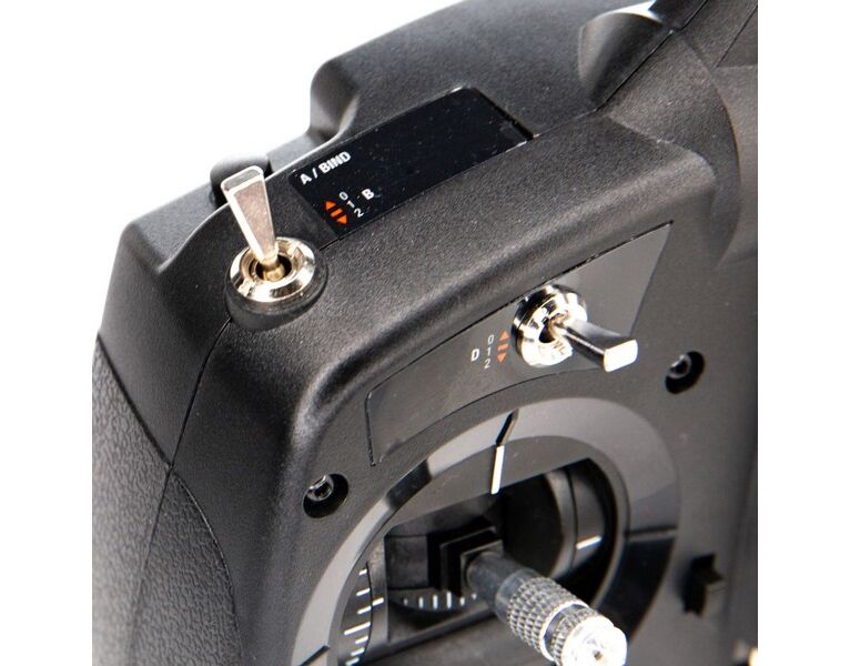 Gewichtsverteilung, Schalterplatzierung und Positionierung der Trimm Schalter wurden für komfortables und ermüdungsfreies Fliegen optimiert. Ein integrierter Handgriff sowie eine Öse für einen Tragegurt sorgen für Tragekomfort. Im Batteriefach finden sich die Anschlüsse für das Lehrer-System und Anschluss an den PC zu Programmierzwecken. Der SRXL2™ DSMX Microempfänger (SPM9747) wird für den kabellosen Lehrer-Betrieb benötigt. Registrierung und Firmware Updates können über den PC erfolgen. Die Software kann von der DXS Produktseite auf SpektrumRC.com heruntergeladen werden und das Update erfolgt über das USB Programmierkabel (separat erhältlich).