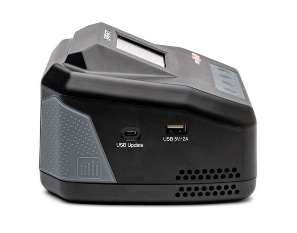 Das elegante Gehäuse des Ladegeräts passt perfekt auf deine Werkbank und in deine Starterkiste. Das Netzkabel ist zum einfachen Transport abnehmbar. Gummigriffe helfen dir, das Ladegerät beim Anschließen und Entfernen von Akkus sicher zu halten. USB-Eingangs- und -Ausgangsanschlüsse ermöglichen dir, die Firmware des Ladegeräts zu aktualisieren und sekundäre Geräte aufzuladen. Zu den weiteren Merkmalen gehören ein eingebauter EIN/AUS-Netzschalter und ein geräuscharmer Lüfter.