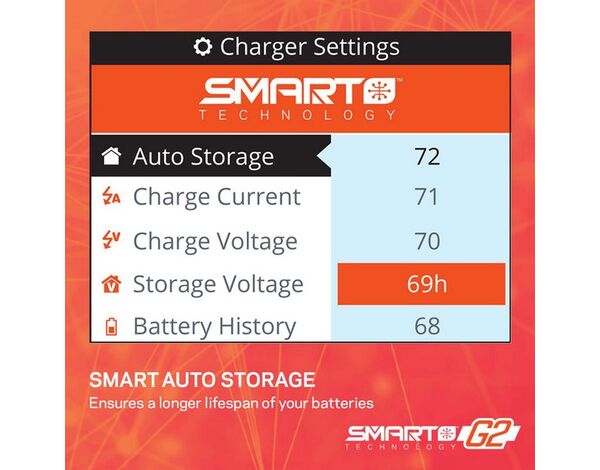 Für das beste Ladeerlebnis bietet das Spektrum™ S155 Smart G2 AC Ladegerät einen Farb-LCD-Bildschirm mit verbesserten Menüs, Symbolen und Navigationswerkzeugen. Die intuitive Benutzeroberfläche ermöglicht es dir, den Ladefortschritt zu überwachen und schnell und einfach Änderungen an den Einstellungen vorzunehmen. Ein Bildschirmuhr zählt die Minuten in Echtzeit herunter, bis dein Smart-Akku vollständig aufgeladen und einsatzbereit ist.