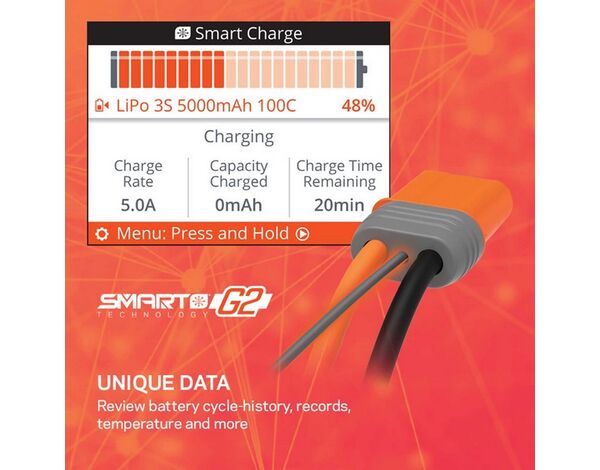 Lädt und balanciert Smart G2-Akkus mit einem einfachen IC3® oder IC5®Anschluss - kein separates Balancer-Kabel erforderlich