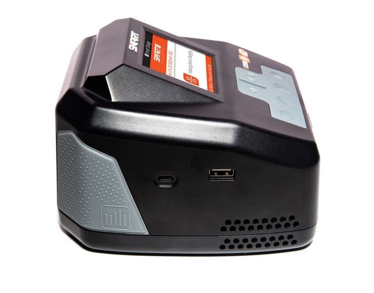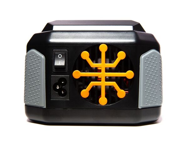 Das schlanke Gehäuse des Ladegeräts passt perfekt auf Deine Werkbank und in Deine Box. Das Netzkabel ist zum einfachen Transport abnehmbar. Gummigriffe helfen Dir, das Ladegerät sicher zu halten, während Du Akkus anschließt oder trennst. Über die USB-Eingangs- und Ausgangsanschlüsse kannst Du die Firmware des Ladegeräts aktualisieren und sekundäre Geräte, wie Dein Mobiltelefon, aufladen. Weitere Features sind ein eingebauter EIN / AUS-Netzschalter und ein geräuscharmer Lüfter.