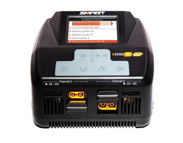 Das 2-Kanal-AC Ladegerät S2200 Smart G2 - der neuen 2. Generation der Spektrum ™ Smart-Elektronik - bietet RC-Piloten und Fahrern aller Erfahrungsstufen die fortgeschrittenste und benutzerfreundlichste Ladetechnologie von heute.