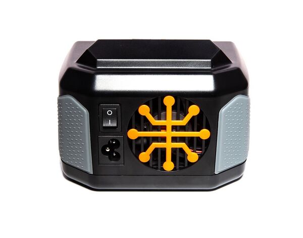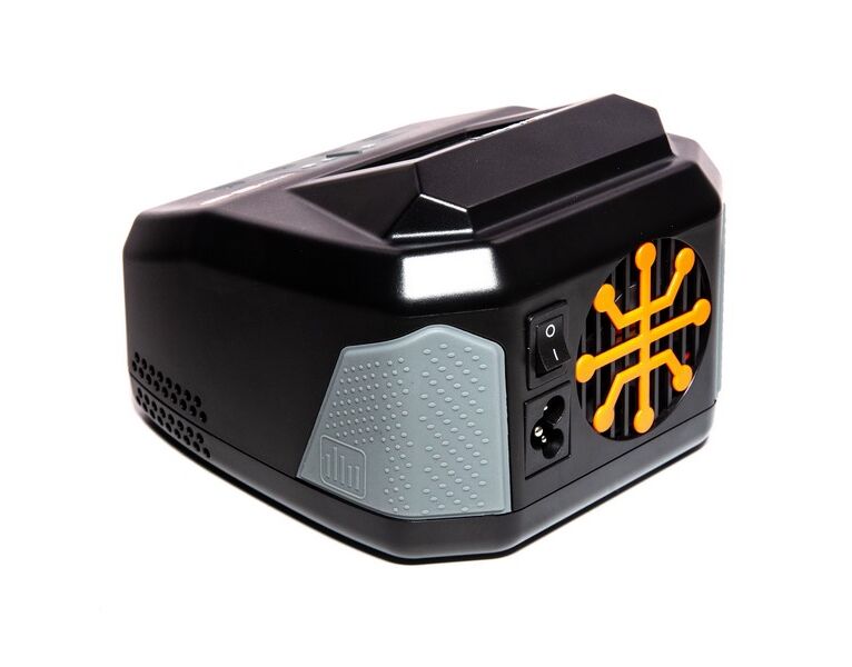 Das schlanke Gehäuse des Ladegeräts passt perfekt auf Deine Werkbank und in Deine Box. Das Netzkabel ist zum einfachen Transport abnehmbar. Gummigriffe helfen Dir, das Ladegerät sicher zu halten, während Du Akkus anschließt oder trennst. Über die USB-Eingangs- und Ausgangsanschlüsse kannst Du die Firmware des Ladegeräts aktualisieren und sekundäre Geräte, wie Dein Mobiltelefon, aufladen. Weitere Features sind ein eingebauter EIN / AUS-Netzschalter und ein geräuscharmer Lüfter.