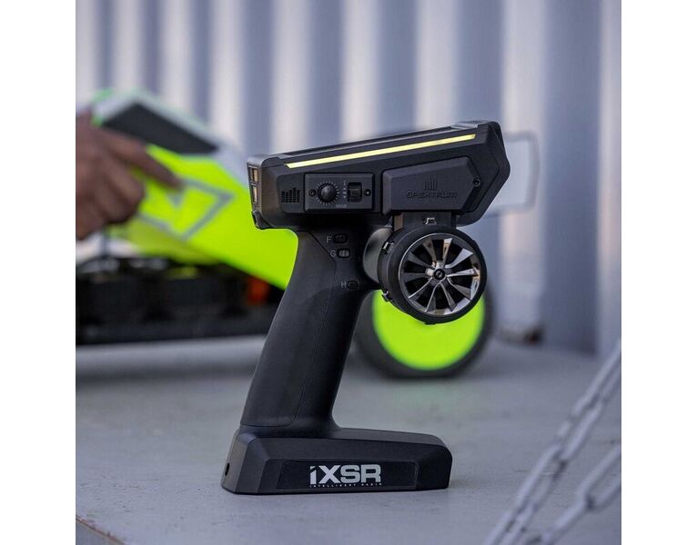 Die Spektrum™ iXSR bietet die besten Funktionen und Möglichkeiten für erfahrene Fahrer, die moderne Hochleistungs-RC-Cars bewegen. Ein neues Level an Ergonomie, Konnektivität und Programmierbarkeit wurde erreicht. Diese leistungsstarke, intelligente und funktionsreiche Fernsteuerung umfasst Spektrum Smart Technologie, ein 4,5 Zoll Farb-Touchscreen-Display mit modernster Android-Technologie, anpassbare Modelleinstellungen, Drag-Race-Funktion und mehr. Der 5-Kanal-Sportempfänger Spektrum SR515 basiert auf frequenzagiler DSMR-Technologie und bietet hervorragende Reichweite und Reaktion, insbesondere in lauten HF-Umgebungen, in denen eine stabile 2,4GHz Verbindung entscheidend ist. Die 2,4GHz Verbindung ist nicht nur stabil, dieses Modell verfügt auch über eine Verbindung mit geringer Latenz für Pro-Level-Fahrer.