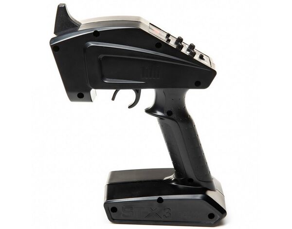 SPMRSTX300 RC ANLAGE CAR STX3 3CH FHSS NUR Sender Key Features Built-in 3-position Throttle Limiter Third Channel Control with Proportional 2, 3 and 4 Position Controls Steering & Throttle Rate & Trim Adjustments with Throttle and Steering Reversing In The Box (1) Spektrum™ STX 3-Channel FHSS Transmitter (1) Manual Needed to Complete 4 x AA Batteries Overview The STX3 3 Channel is proof positive you don't have to spend big to get a precision RC transmitter you can use with an entire fleet of vehicles. Now it includes 3 Channel functions that provide 2, 3 and 4 position settings and proportional control. The easy to grip foam wheel and style makes it easy to hold, plus its versatility and durability makes it ideal for bashers and crawlers. Need to replace your RTR radio system? If you answered yes, the Spektrum STX3 transmitter is the solution you've been looking for. It also comes with the untouchable service and support of Horizon Hobby that has made the Spektrum brand one of the most trusted names in radio control. Note:The STX3 Transmitter is not compatible with DSMR, DSM2 or DSM Marine equipment. Features Easy to grip foam wheel Third channel control with proportional 2, 3 and 4 position controls allows for additional vehicle features like lights, winches and more Ideal for replacing RTR 2.4GHz transmitters or completing a kit that requires a transmitter Built-in 3-position throttle limiter Comfortable grip and intuitive controls Steering & throttle rate & trim adjustments with throttle and steering reversing