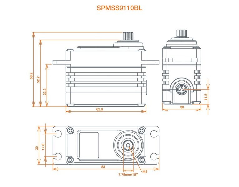 Starting with a new case design with improved support for pins holding the gears, and a new aluminum top plate with re-designed bearing house, the S9110 and S9120 have been design for improved durability. A new brushless motor design will give more power than any previous Spektrum servos – the high torque S9120 is rated at 1454 oz-in of torque at 8.4v, while the high speed S9110 is rated at 1224 oz-in of torque. The S9110 keeps a similar speed of 0.14 sec/60⁰ at 8.4, while having almost 60% more torque than the previous version! Additional improvements include a sleek new stealth black design and new thicker 18awg wire detachable connector. What’s more, both are already race proven, the S9110BL and S9120 having won the 2020 1/5 Worlds Buggy Class at So Cal Nitro.