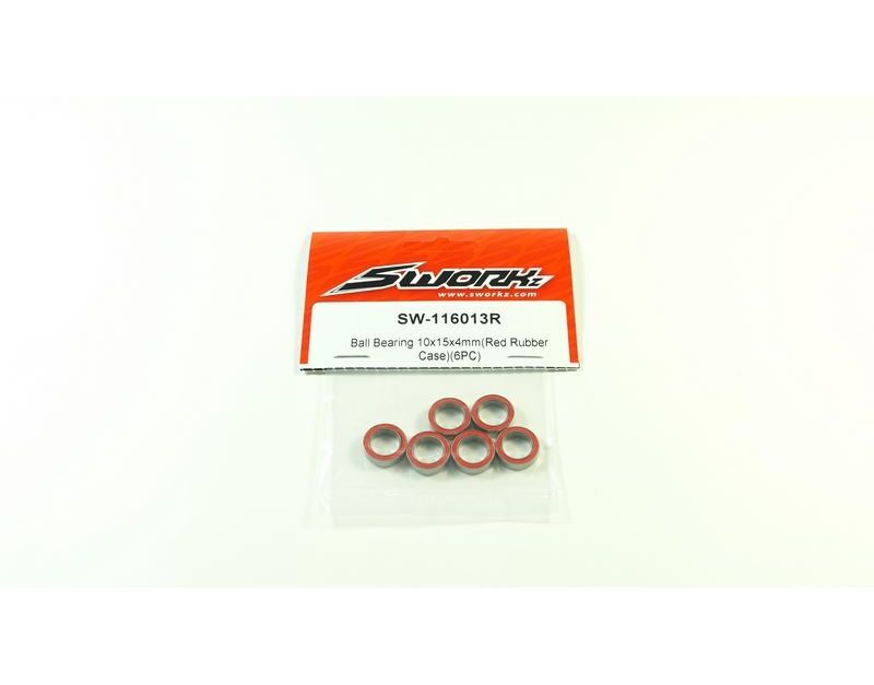 SW116013R Sworks Ball Bearing 10x15x4mm RED Rubber (6pcs)