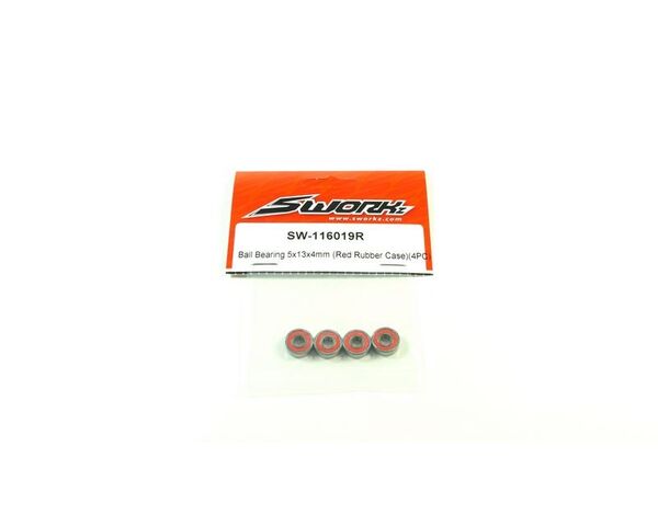 SW116019R Sworks Ball Bearing 5x13x4mm RED Rubber (4PC)