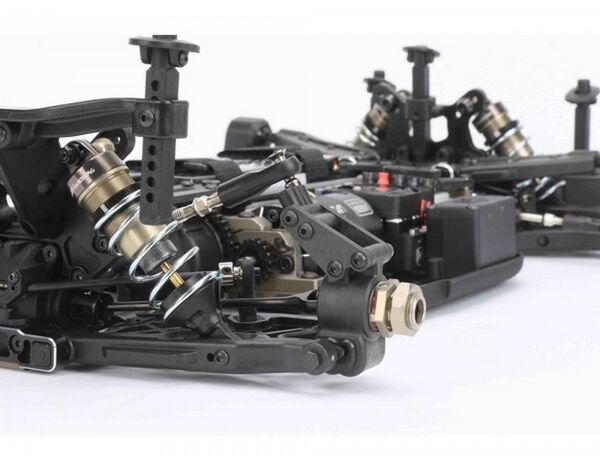 Der S35-GT2e ist als reinrassige Rennmaschine für Electric GT Onroad Racing konzipiert. Es hat ein brandneues Design der einzigartigen Vorder- und Hinterradaufhängung. Die Ackerman-Lenkgeometrie wurde vom 1/8 S35-4E-Buggy übernommen.