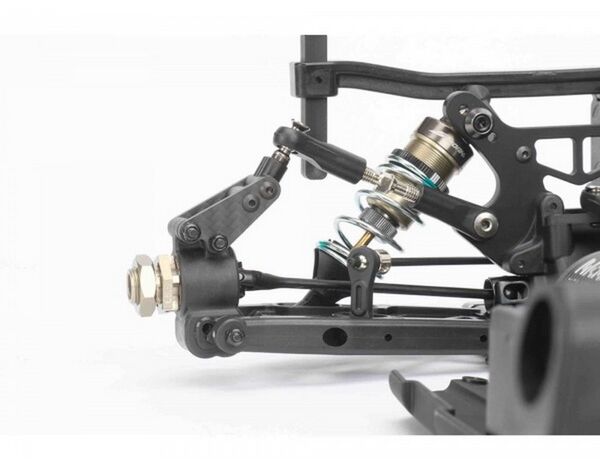 Mit den mit Vierkanteinsätzen gelieferten Querlenkerhalterungen kann die Achsgeometrie Ihres SWORKz S35-GT2e an jedes Schienenlayout angepasst werden. Die vorderen und hinteren Querlenker bestehen aus einem neu entwickelten Verbundwerkstoff. Die Seitenwannen wurden ebenfalls neu gestaltet.