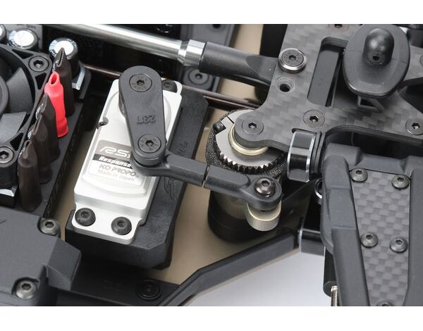 The new S35-4e EVO comes a brand new steering Lay-Down Type Steering Bellcrank servo savor system. With this new Ackerman design gives the driver the feeling of total control over the S35-4e EVO.