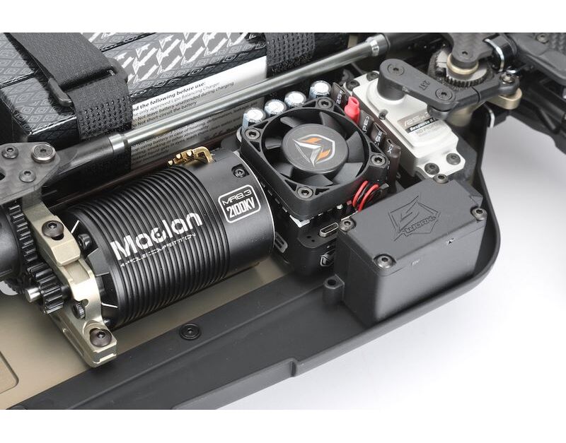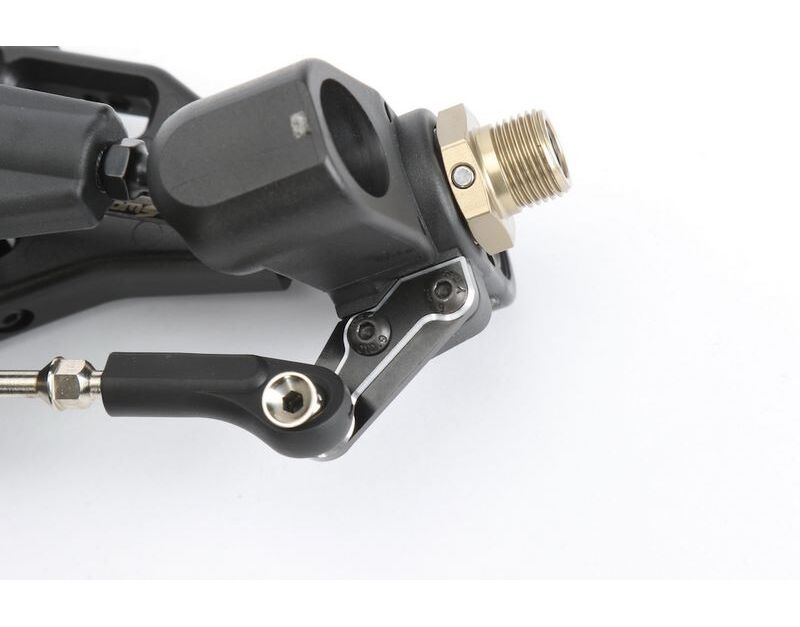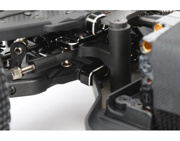 The new S35-4e EVO comes a brand new steering Lay-Down Type Steering Bellcrank servo savor system. With this new Ackerman design gives the driver the feeling of total control over the S35-4e EVO.