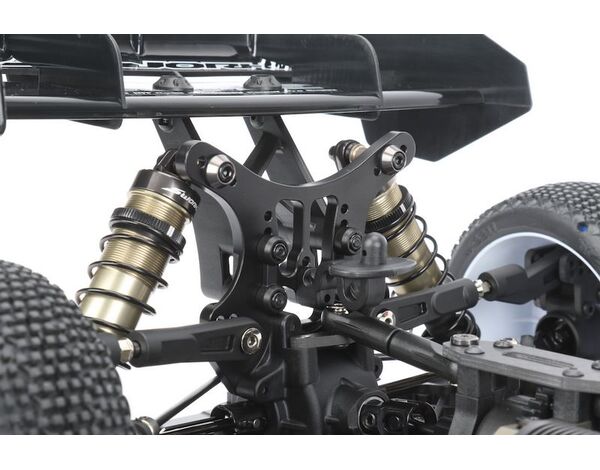 The SWORKz S35-4e EVO standard includes the Arched-Bridge-System and the higher capacity shock system. This is a big step for S35-4e EVO, the design made the car go faster and be more stable.
