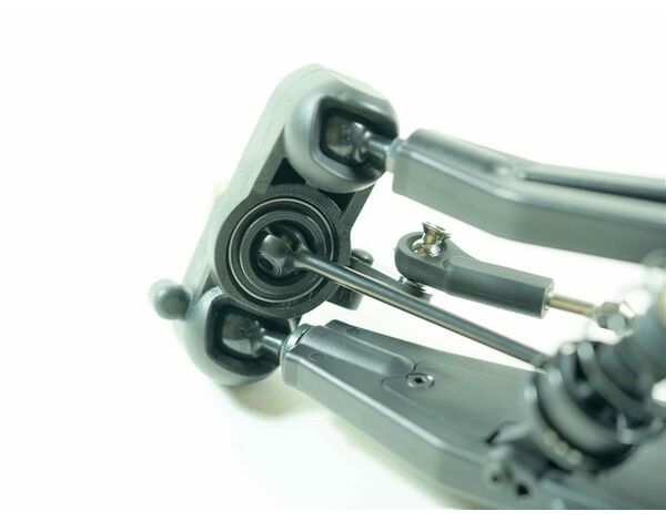 Einstellbares oberes und unteres Querlenkersystem vorne.