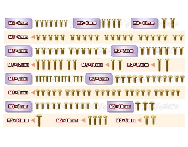 T-Work´s Mugen MTC-2R Stahl Schrauben Set Gold Beschichtet (135)