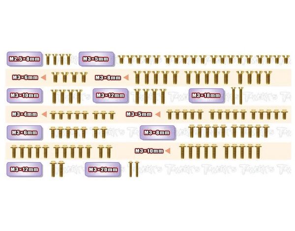 T-Work`s Ufo Stahl Schrauben Set Gold Beschichtet für Xray X4-2024 (117)