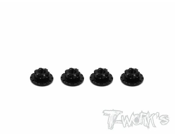 T-Work´s 7075-T6 Aluminium Radmutter M4. große Auflagefläche. Linksgewinde. mit Flansch - Schwarz (4