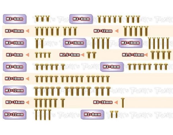 T-Work`s Stahl Schrauben Set Gold Beschichtet für Mugen Seiki MSB1(100)