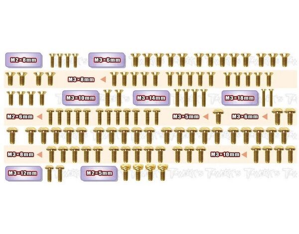 T-Work`s Stahl Schrauben Set Gold Beschichtet - Yokomo MS1.0 (107)