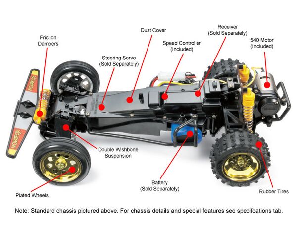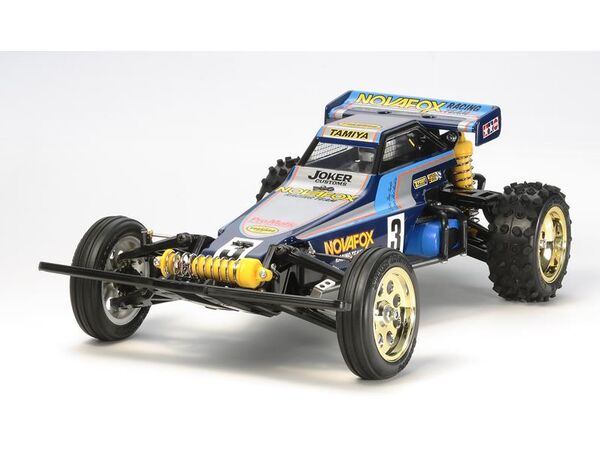 Der TAMIYA Novafox ist eine überarbeitete Wiederauflage des The Fox, der im Jahre 1985 präsentiert wurde. Die Neuauflage verfügt über exzellente Off-Road-Eigenschaften und goldfarben verchromte Felgen. Öldruckstoßdämpfer und Pin-Spike Hinterräder sorgen für Traktion im Gelände.