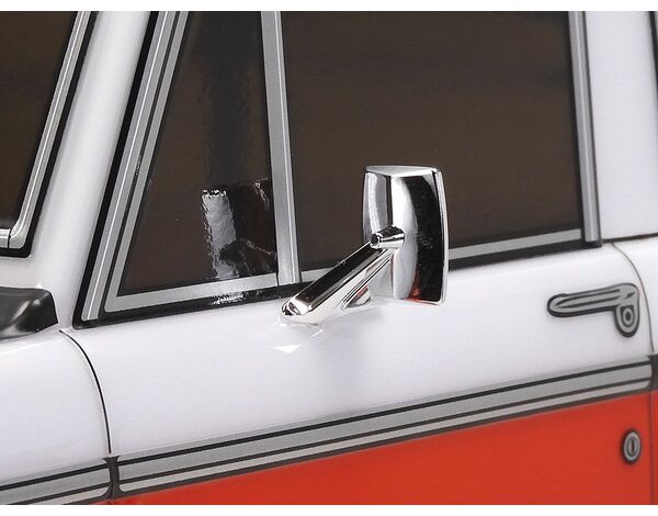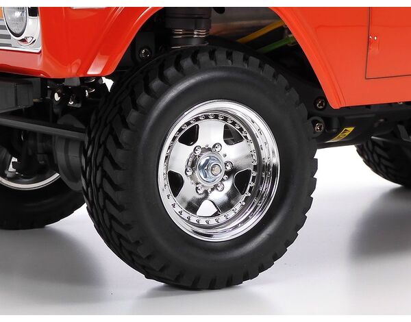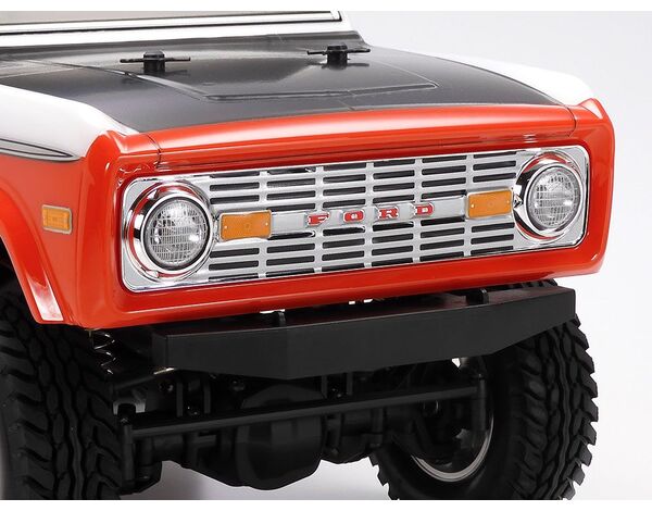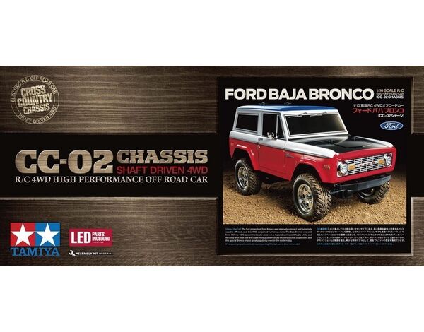 The vehicle depicted in this R/C assembly kit recreates the first-generation FORD Bronco on the cross-country CC-02 chassis. The first-generation Ford Bronco was relatively compact and extremely capable off-road, and this 4WD vehicle participated in numerous races thanks to custom fabrication teams of the day. The Baja Bronco edition was sold from 1971 to 1975 to commemorate its victories in prestigious Baja race events such as the Baja 500 and 1000. The Baja edition had a white and red body with a blue roof and black hood plus reinforced components such as suspension. This special Bronco enjoys great popularity even to this day!
