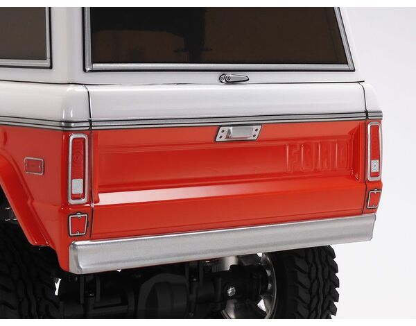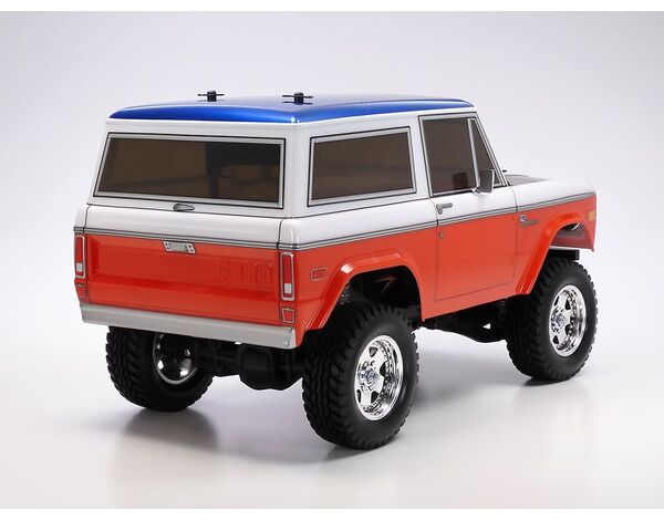The vehicle depicted in this R/C assembly kit recreates the first-generation FORD Bronco on the cross-country CC-02 chassis. The first-generation Ford Bronco was relatively compact and extremely capable off-road, and this 4WD vehicle participated in numerous races thanks to custom fabrication teams of the day. The Baja Bronco edition was sold from 1971 to 1975 to commemorate its victories in prestigious Baja race events such as the Baja 500 and 1000. The Baja edition had a white and red body with a blue roof and black hood plus reinforced components such as suspension. This special Bronco enjoys great popularity even to this day!