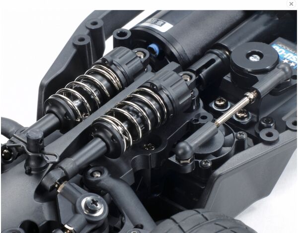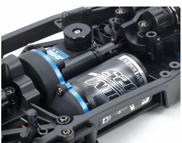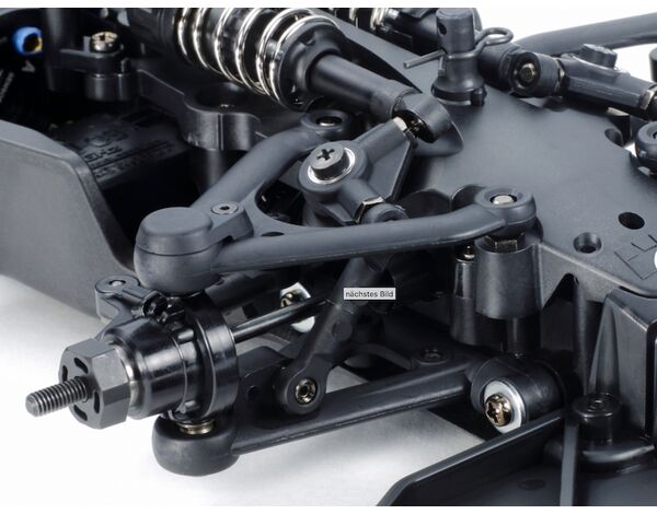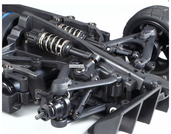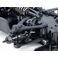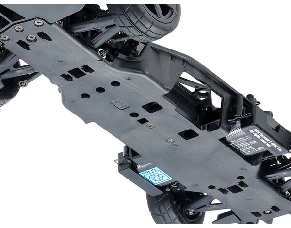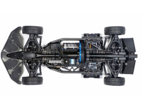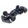 Dieses langlebige Monocoque-Rahmen-Chassis aus Verbundwerkstoff bietet einen wellengetriebenen Allradantrieb von einem Zentralmotor über vordere und hintere Propellerwellen mit ölgefüllten Getriebedifferentialen. Die 4-Rad-Einzelradaufhängung mit doppelten Querlenkern verfügt über lange Arme sowie Innenbordkonstruktionen vorne und hinten mit Ölstoßdämpfern, die durch Stößelstangen und Kipphebel betätigt werden, um die Verwendung von Karosserien mit niedrigem Profil zu ermöglichen. Passen Sie die Breite des Distanzstücks an, um die Einstellungen für Sturz, Schlupf und Spurwinkel einfach zu ändern. Sowohl die Aufhängungsarme als auch die Pfosten sind links, rechts, vorne und hinten identisch, was effizientere Wartungs- und Grubenarbeiten ermöglicht.