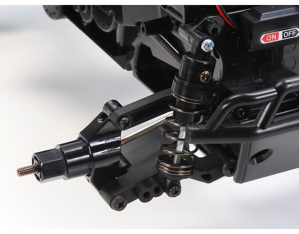 Der schlanke Rahmen ist mit Leiter-/Rohrmotiven versehen und verfügt über integrierte, abgedichtete Getriebeboxen, um Steine und Schmutz fernzuhalten. Vorder- und Hinterraddifferentiale ermöglichen sanfte Kurvenfahrten, während separat erhältliche Ritzel die Wahl zwischen drei verschiedenen Getriebeübersetzungen bieten.