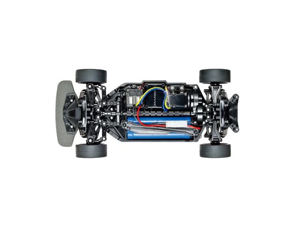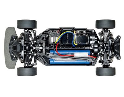 Als Basis dient dem 58691 TAMIYA Modell im Maßstab 1:10 das TT-02 Chassis. Bei diesem sind Radstand, Bodenfreiheit, Spur und Getriebeübersetzung vielfach einstellbar und mit den unzähligen optionalen Tuningteilen lässt sich das Chassis schnell zum Racer tunen. Der 4WD-Antrieb mit zentraler Welle, doppelte Querlenker und Federbeine an allen vier Rädern sorgen für ein vorbildgetreues Fahrbild und beste Traktion. Die Chassisunterseite ist extra glatt gestaltet und das Batteriefach nimmt alle gängigen Akkutypen auf. Optisches Highlight sind die Radmitnehmer, die angesetzte Bremsscheibenattrappen haben.