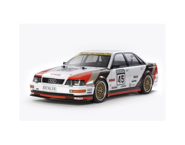 Tamiya freut sich, den Auftritt eines weiteren klassischen Rennwagens auf unserem beliebten TT-02-Chassis anzukündigen, diesmal den Audi V8-Tourenwagen mit einem 456 PS starken 3,6-Liter-V8, der 1991 die DTM (Deutsche Tourenwagen Masters) zierte. In dieser Saison holte er insgesamt vier Siege und trug Frank Biela zum Fahrertitel.