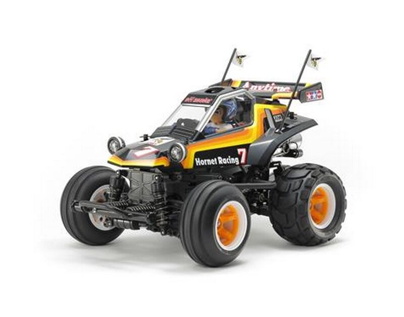 The original Hornet needs little introduction. It was a Tamiya legend which inspired legions of fans since the 1980s. For many, it was their very first introduction into the world of radio control assembly kits. The original Hornet is still among Tamiya’s best-selling kits to this day. Now the legend is re-imagined as the Comical Hornet, with a new body inspired by the famous original. The re-imagined body, which includes a newly designed driver figure, sits on a new and dedicated variant of the proven off-road chassis: the WR-02CB.