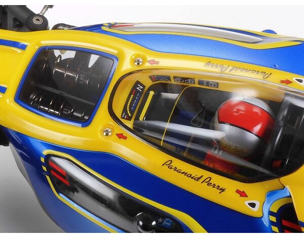 ・Die auffällige Polycarbonat-Karosserie (inspiriert vom Tamiya-Klassiker Avante) wurde vom japanischen Designer Kota Nezu von znug design entworfen.