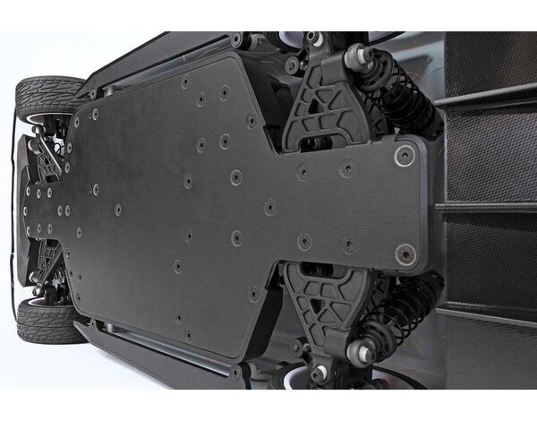 Das Apex2-Chassis verfügt über einige der neuesten Features aus dem On-Road-Racing-Bereich. Dank Einzelradaufhängung mit ölgefüllten Gewindestoßdämpfern vorn und hinten und aktiver Sturzänderung an der Hinterachse bietet das Apex2 ein ultimatives Fahrverhalten auf unebenem Asphalt. Dadurch ist es die perfekte Plattform für den Hoonicorn und reifenzerfetzende Action!