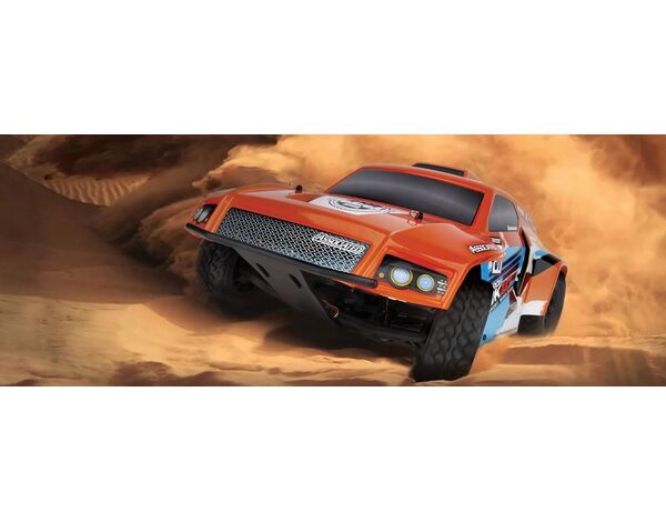 Der Team Associated Pro2 DK10SW Dakar Buggy basiert auf den 9-fachen ROAR Short Course National Championship-Gewinnern und ist mit einem wasserresistenten, Brushless Hochleistungsregler von Reedy Power und einem 3300kV Brushless-Motor, einer 2,4GHz 2-Kanal-Fernsteuerung sowie unserer DVC (Dynamic Vehicle Control) Empfängereinheit mit eingebautem, einstellbarem Digital-Gyro ausgestattet. Hinzu kommen ein digitales High-Torque-Servo mit Metallgetriebe von Reedy Power und eine wassergeschützte, geschlossene Box für den Empfänger. All dies ist in einer werkseitig lackierten orange-blauen Karosserie verpackt. Und damit Sie auf dem Boden bleiben, sorgt dieses DK10SW-Biest mit kurzem Radstand dafür, dass Sie mit den mitgelieferten griffigen All-Terrain-Reifen und den leichten Felgen um die Kurven fliegen. Jetzt ist die Zeit gekommen, um die Strecke zu erobern!