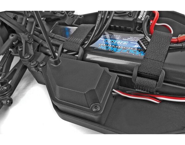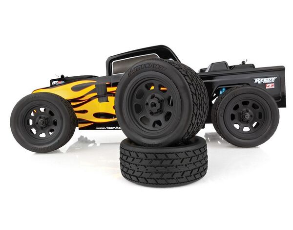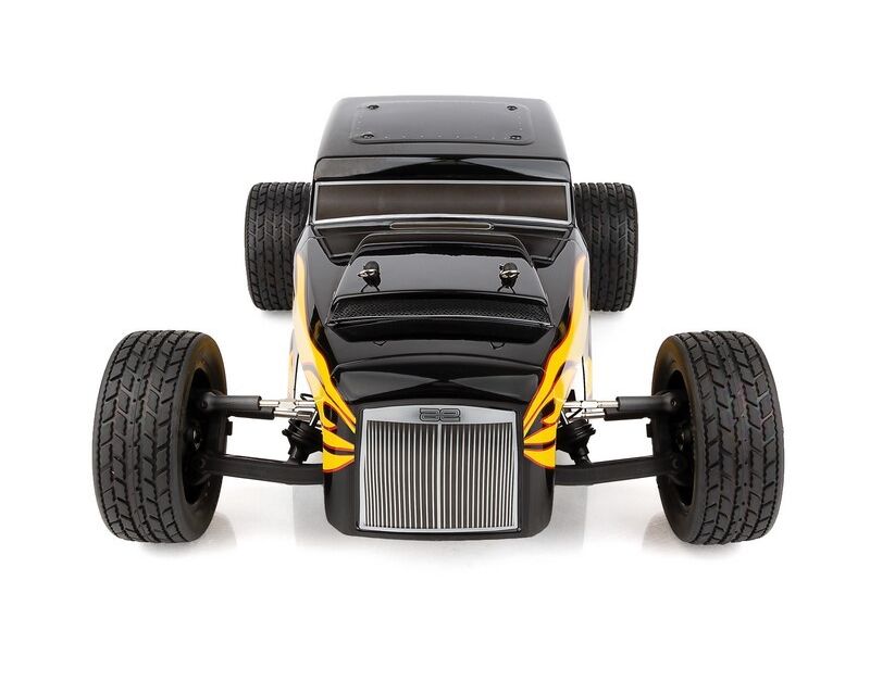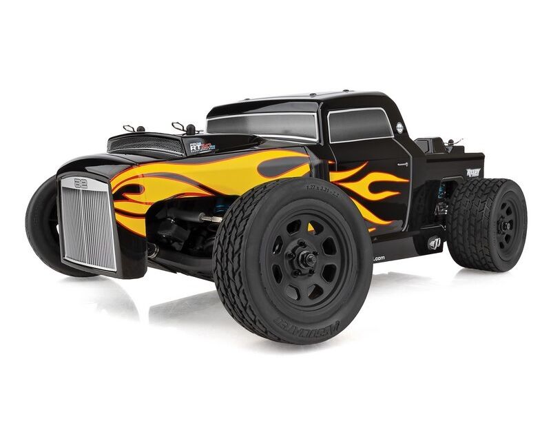 Die Leidenschaft für diese Rods lebt auch heute noch und Team Associated zollt dem Genre Tribut mit dem Pro2 RT10SW Rat Rod, der auf dem 9-fachen ROAR Short Course National Championship Gewinner basiert und mit einem wasserdichten, leistungsstarken Reedy Brushless Speed Controller und 3300kV Brushless Motor, einem 2,4GHz 2-Kanal Fernsteuersystem und unserer DVC (Dynamic Vehicle Control) Empfänger mit eingebautem, einstellbarem Digital Gyro ausgestattet ist. Dazu kommt ein digitales Reedy Metallgetriebe-Servo mit hohem Drehmoment und ein wassergeschütztes, geschlossenes Empfängergehäuse - alles verpackt in einem exzellenten, werkseitig gefertigten Gehäuse. Mit den mitgelieferten griffigen All-Terrain-Reifen und den leichten Rädern ist der RT10SW ein echter Kurvenräuber.