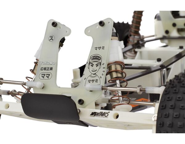Gefahren von Masami Hirosaka zeigte dieses legendäre Fahrzeug fortschrittlichste Technik, präzises Handling und ein zukunftsorientiertes Chassis-Layout, das die Leistungsgrenzen seiner Zeit deutlich verschob. Der RC10 Stealth verfügte über ein Doppeldeck-Chassis in Kombination mit dem inzwischen berühmten Stealth-Getriebe, das eine gleichmäßigere Leistungsabgabe, höhere Effizienz und eine gesteigerte Haltbarkeit auf dem anspruchsvollen Streckenbelag bot. Die sorgfältig abgestimmte Fahrwerksgeometrie, einstellbare Camber-Links und ein rennoptimiertes Dämpferpaket ermöglichten es Masami, während des gesamten Events außergewöhnlichen Grip und hohe Stabilität herauszuarbeiten.