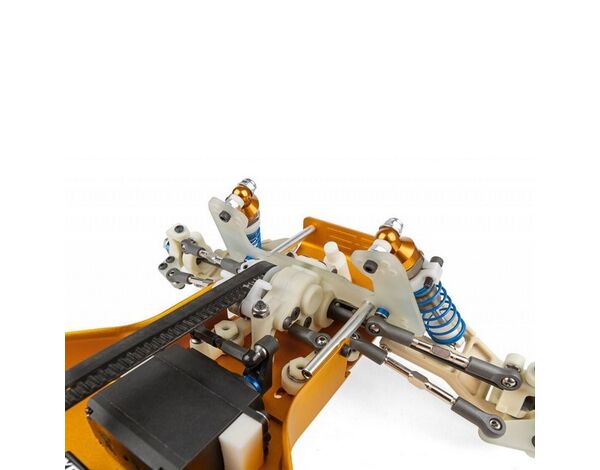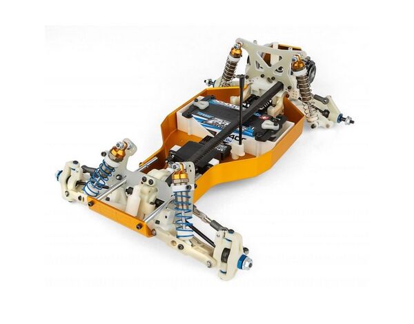 Die Einzelradaufhängung mit harteloxierten Coilover-Dämpfern bügelt die Unebenheiten der Strecke glatt. Präzise gefertigte Nylon-Aufhängungsteile lassen sich bei Bedarf sogar individuell einfärben. Das lange Design der vorderen Querlenker-/Kugelgelenk-Konstruktion ermöglicht umfangreiche Setup-Einstellungen wie Sturz, Sturzanstieg, Nachlauf, Bodenfreiheit und Federhärte, damit Sie Ihr Fahrzeug an jede Strecke optimal anpassen können.
