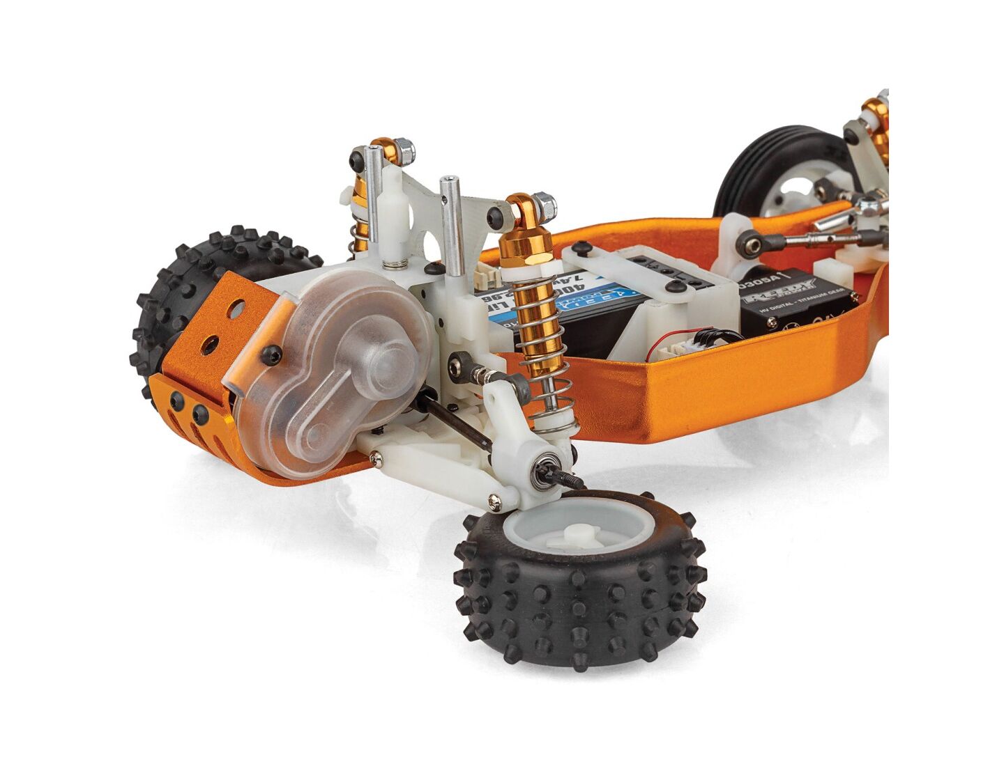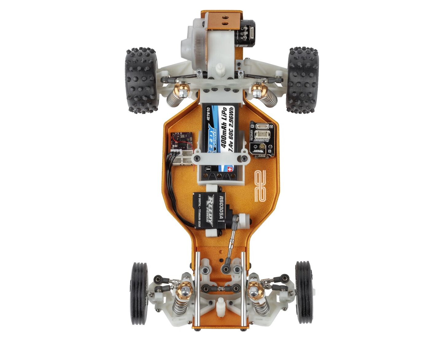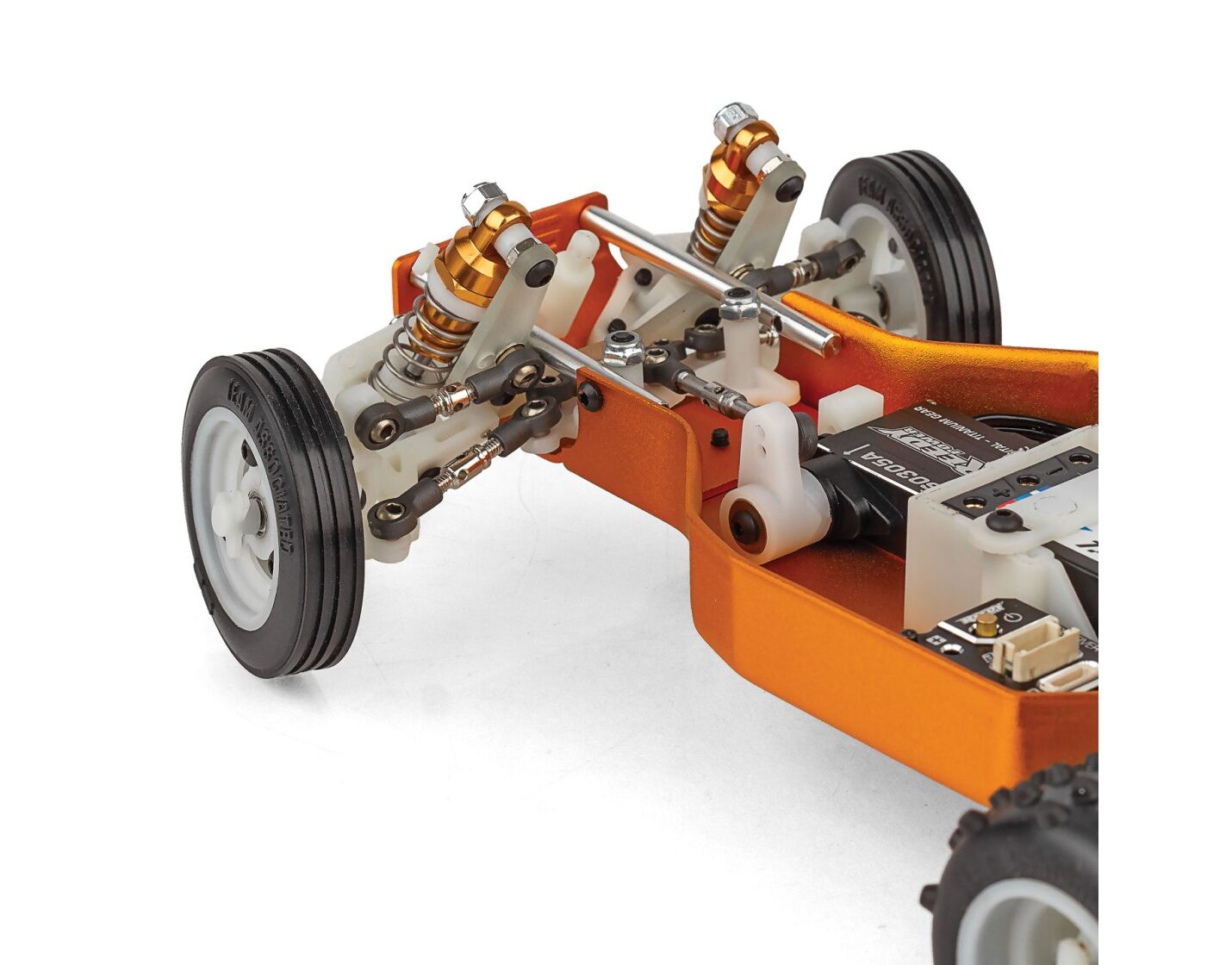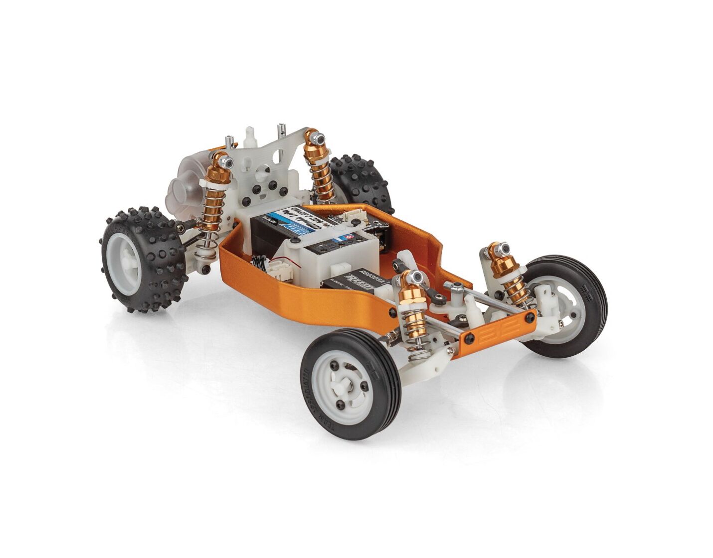 Mit exzellenter Bodenfreiheit und einem niedrigen Schwerpunkt bietet das RC10 Modell 24 eine beeindruckende Balance und Leistung auf einer Vielzahl von Untergründen.