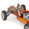 Die rennsporttauglichen Öldruckdämpfer mit langem Hub sorgen für eine sanfte, kontrollierte Dämpfung, während die leichte und dennoch robuste Aufhängung eine echte Einstellbarkeit bietet – genauso wie beim großen Bruder. Das A-Arm-Design ermöglicht eine präzise Abstimmung von Sturz, Fahrhöhe und Federraten. Ein einstellbares Kegel-Differenzial sorgt für eine ausgewogene Kraftübertragung.