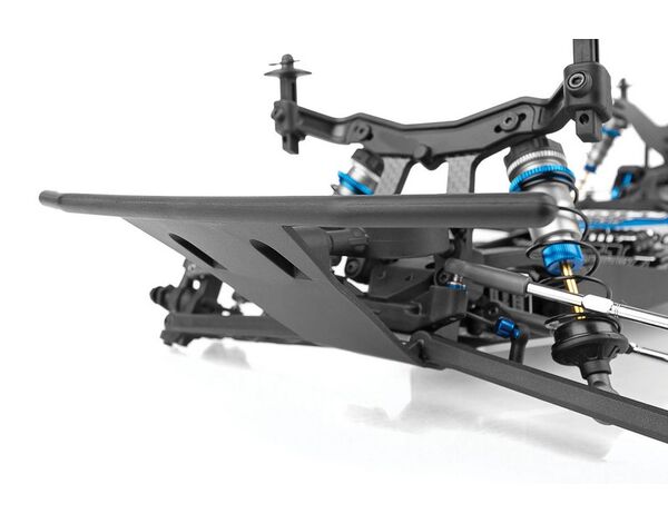 Neues Truck-Chassis mit 22,5° Kick-up um die aktualisierte Vorderachsgeometrie zu ergänzen und so ein Aufsetzen des Chassis auf der Streckenoberfläche zu reduzieren
