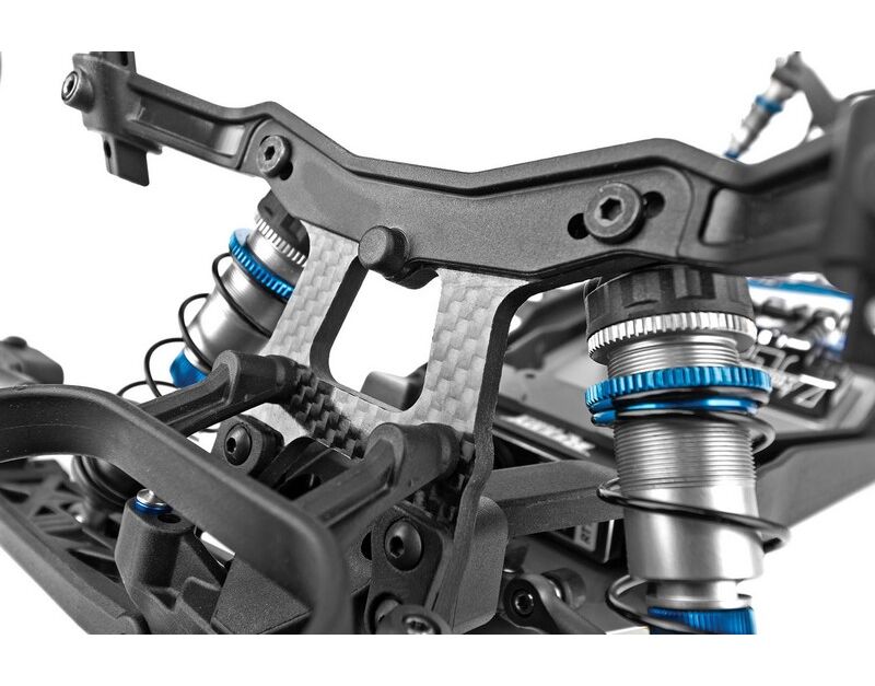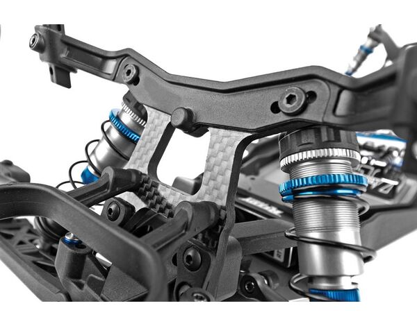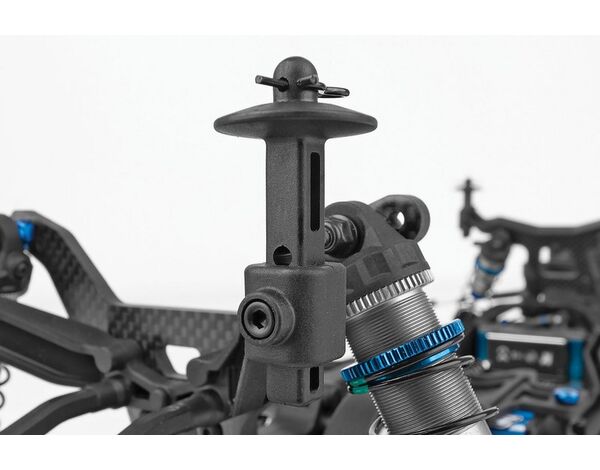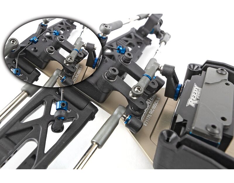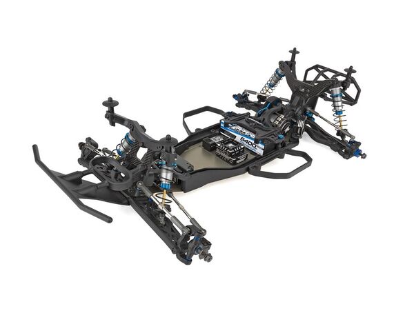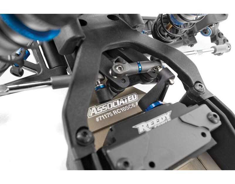 Der RC10SC6.4 teilt wichtige Komponenten mit den RC10B6.4, RC10B6.4D und RC10B74.2 Team Kits und macht es einfacher denn je, mehrere Klassen gleichzeitig zu fahren. Die Dämpfung erfolgt über großvolumige 13-mm-Big-Bore-Dämpfer mit neuen Truck spezifischen Federn. Das neue Chassis-Design ist eine Truck-Version des RC10B6.4 Buggy-Designs und verfügt über eine neue vordere Top-Platte passend zum neuen Chassis-Kick-up von 22.5°. Dies reduziert das Aufsetzen der Bodenplatte am Streckenbelag und verbessert so das Fahrverhalten. Der Grip am Heck wird durch die breiteren C und D Aufhängungshalterungen und den 93,5mm langen CVA-Knochen verbessert, welche nun Teil des Baukastens sind. Ebenfalls neu sind die stabilen 3,5mm Spurstangen und Kugelpfannen.