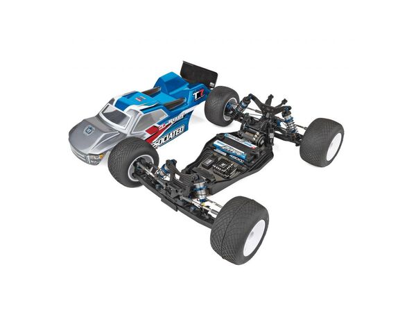 Basierend auf der RC10B7-Plattform von Team Associated ist das RC10T7 Team Kit die nächste Generation der erfolgreichen Truck-Plattform. Die Designziele waren die Senkung des Schwerpunkts, die Erhöhung der Haltbarkeit und die Integration der Einstellbarkeit und Leistung des RC10B7. Die Ingenieure von Team Associated in Area 51 legten ihr Hauptaugenmerk auf die Entwicklung des neuen 3-Gear-Getriebes, um den Reibungswiderstand zu reduzieren und die gesamte Kraft auf die größeren Truck-Reifen zu übertragen.