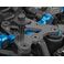 Die blauen RC8B4 A- und B-Querlenkerhalter aus Aluminium sind so geformt, dass sie in das Chassis eingreifen.