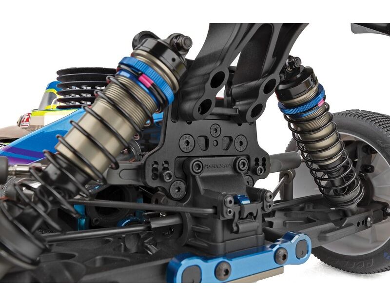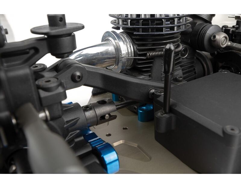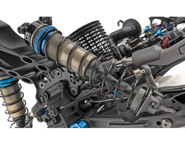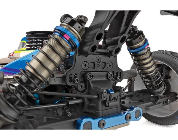 Die neuen hinteren Radträger mit breiter Basis gibt es in drei festen Achshöhen und mit 3 mm dicken Kohlefaserplatten, um verschiedene Geometrieoptionen zu ermöglichen. Schließlich ist der Buggy mit 92-mm-Kreuzgelenken, 44/13-Kegelrädern und einem Hauptzahnrad mit 47 Zähnen ausgestattet, um den besten Grip und die beste Kraftübertragung auf nicht präparierten Strecken im Freien zu gewährleisten.