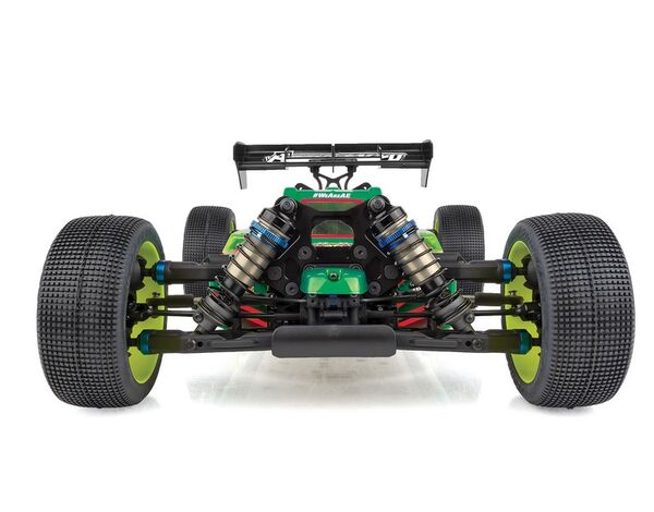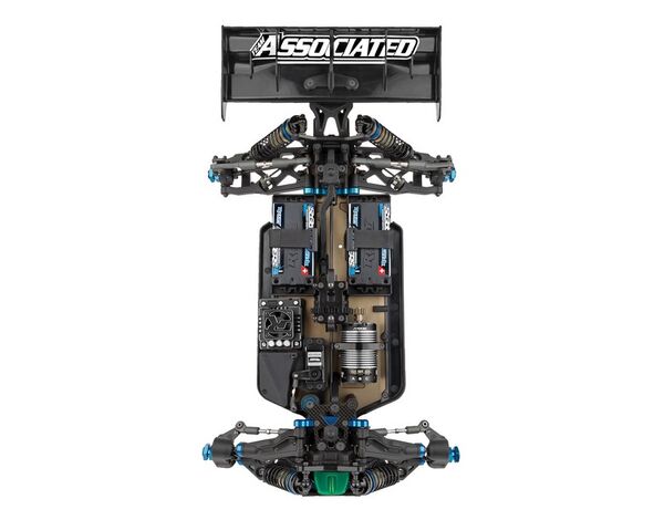 Die Ingenieure von Team Associated haben versucht, den Schwerpunkt und das Gewicht zu senken und das Handling auf unebenen Outdoor-Strecken zu verbessern. Das Herzstück des Buggys ist das neue RWB/FWB-Chassisdesign mit einstellbarer Gewichtsverteilung. Das innovative System ermöglicht es dem Fahrer, entweder mit dem Motor nach hinten zu fahren, um mehr Traktion zu erhalten, oder das Mitteldiff zu verlagern und die mittleren Dogbones umzulegen, um den Motor nach vorne zu fahren, um mehr Lenkung zu erhalten.