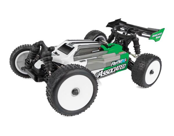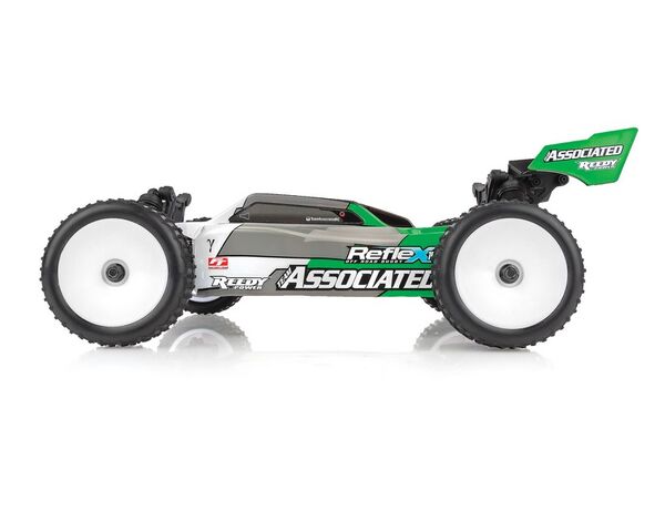 Team Associateds Reflex 14B Gamma 1:14 4WD Ready-to-Run Buggy kommt serienmäßig vormontiert, mit einem Reedy Power Brushless-Motor und -Fahrtregler, einem High-Torque-Lenkservo sowie einer 2,4GHz-Fernlenkanlage. Damit stehen Ihnen jede Menge Power und 4WD-Kontrolle zur Verfügung - und das ohne langwierige Bauzeit! Zusätzlich lassen sich diverse Fahrwerksparameter nach Ihren Wünschen einstellen, um auf jedem Untergrund die optimale Performance zu erzielen. Serienmäßige High-Performance-Teile wir drei abgedichtete Kegelraddifferentiale, eine Aluminium-Lenkungsplatte sowie eine leichte Aluminium-Mittelwelle runden das Paket ab. Alles was Sie noch benötigen ist ein passender Fahrakku und schon können Sie Offroad Action im Westentaschenformat erleben!