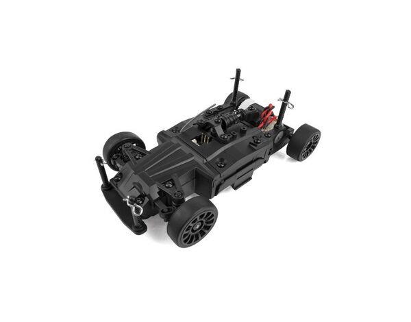 Verstellbare vordere und hintere Karosseriehalterungen. Das abnehmbare Karosserieteil ermöglicht die Montage von Karosserieteilen aus dem Zubehörhandel.